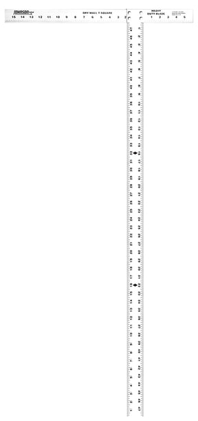 Take errors and guesswork out of your next drywall job with this heavy-duty 48 in T-square from Johnson. Its extruded aluminum blade and head are a robust 3/16 in T, creating a safer straight edge that prevents your utility knife from slipping, while its clear protective anodized finish will keep your tool safe from rust and corrosion. The JTS48HD T-square features a unique rivet assembly that permanently bonds the head and blade, so that it stays square for life. This T-square was also designed to be easy-to-use. It features thermal-bonded black 1/8 in graduations that are large and bold for easy reading.