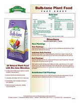 Bulb-Tone is a premium organic fertilizer formulated specifically for bulbs and tubers. It contains bone meal and other natural organics to meet the special nutritional needs of these plants. Bulb-Tone's all natural formula contains Bio-tone, our proprietary blend of beneficial microbes. Bio-tone biologically enhances our natural organic fertilizer to ensure great plant growth. Bulb-Tone feeds slowly and will provide a long lasting nutrient reservoir to ensure great results.