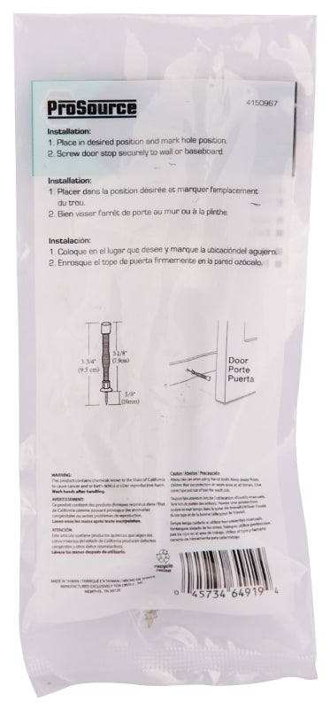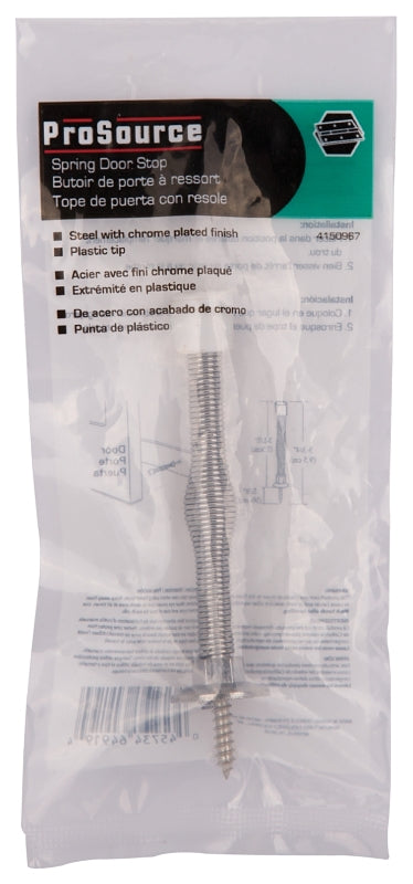 ProSource H61-Z012-PS Light-Duty Door Stop, 3/4" in Dia Base, 3 in Projection, Plastic & Steel, Chrome