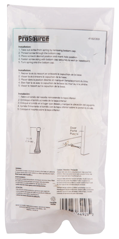 This spring doorstop help prevent damage to walls when opening a door. The rubber bumper tip protects the door from getting damaged. Spring design allows flexibility with door. Easy to install.
