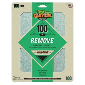 Gator Premium Sandpaper, Latex Backing, 100 Grit, Coarse Grit Grade, 11 in Length, 9 in Width, Applicable Materials: Drywall, Fiberglass, Metal, Painted Surface, Wood