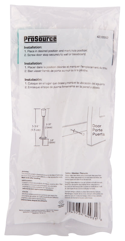 ProSource H20-Z022-PS Heavy-Duty Rigid Door Stop, 3-1/8 in Dia Base, 3-1/8 in Projection, Die-Cast Zinc & Plastic