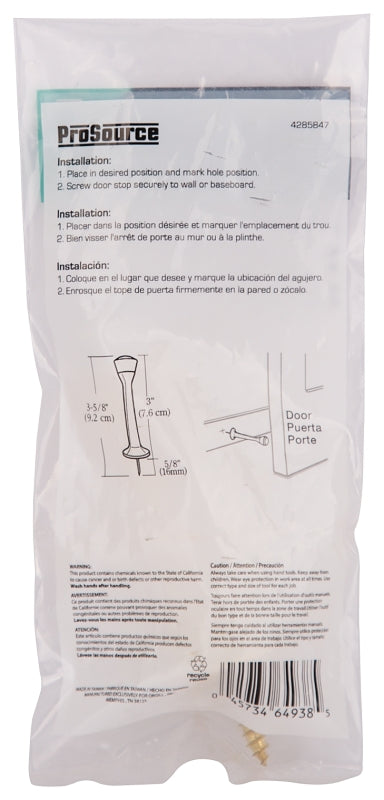 ProSource CL-208P-PB-PS Heavy-Duty Rigid Door Stop, 1 in Dia Base, 3 in Projection, Die-Cast Zinc & Plastic