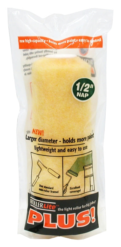 The RollerLite Plus roller cover has an increased diameter to maximize surface area and paint coverage per roll. ProLam fabric is a lambswool, polyester and acrylic blend offering versatility and performance for smooth surfaces. Compatible with all paints and stains. Paint roller compatible with a 6 in single-wire frame.