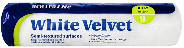 RollerLite White Velvet 9WV050 Roller Cover, 1/2 in Thick Nap, 9 in L, Dralon Fabric Cover, White