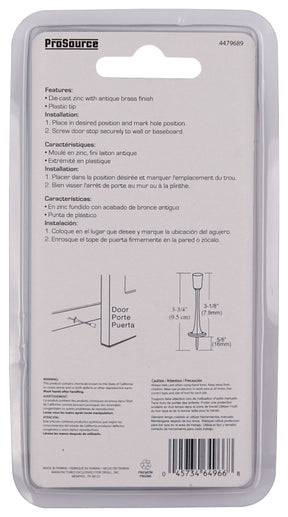 ProSource H20-Z023C-PS Heavy-Duty Rigid Door Stop, 15/16 in Dia Base, 3-1/8 in Projection, Die-Cast Zinc & Plastic is backordered and will ship as soon as it is back in stock.