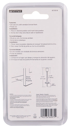ProSource H20-Z029C-VB-PS Heavy-Duty Rigid Door Stop, 15/16 in Dia Base, 3-1/8 in Projection, Die-Cast Zinc & Plastic