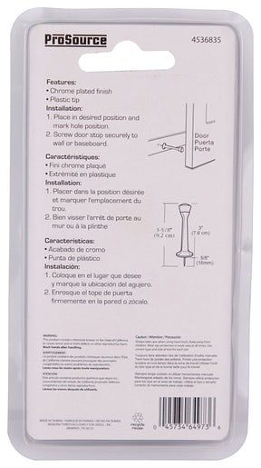 ProSource CL-208C-CH-PS Heavy-Duty Rigid Door Stop, 1 in Dia Base, 3 in Projection, Die-Cast Zinc & Plastic, Chrome