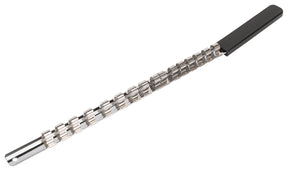 The Vulcan socket clip rail is made from chrome-plated steel. The clip rail is for 3/8 in sockets and holds up to 16 sockets for easy storage.