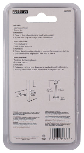 ProSource CL-208C-SN-PS Heavy-Duty Rigid Door Stop, 1 in Dia Base, 3 in Projection, Die-Cast Zinc & Plastic