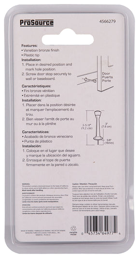 ProSource CL-208C-VB-PS Heavy-Duty Rigid Door Stop, 1 in Dia Base, 3 in Projection, Die-Cast Zinc & Plastic
