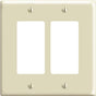 Leviton 80609-I Wallplate, 3-1/8 in L, 4.94 in W, 2-Gang, Thermoset Plastic, Ivory, Smooth