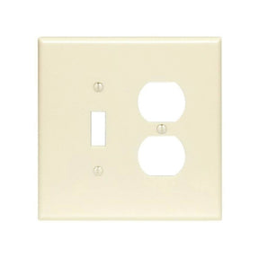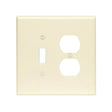 Leviton 86005 Combination Wallplate, 4-1/2 in L, 4-9/16 in W, Standard, 2-Gang, Thermoset Plastic, Ivory, Smooth, Flush