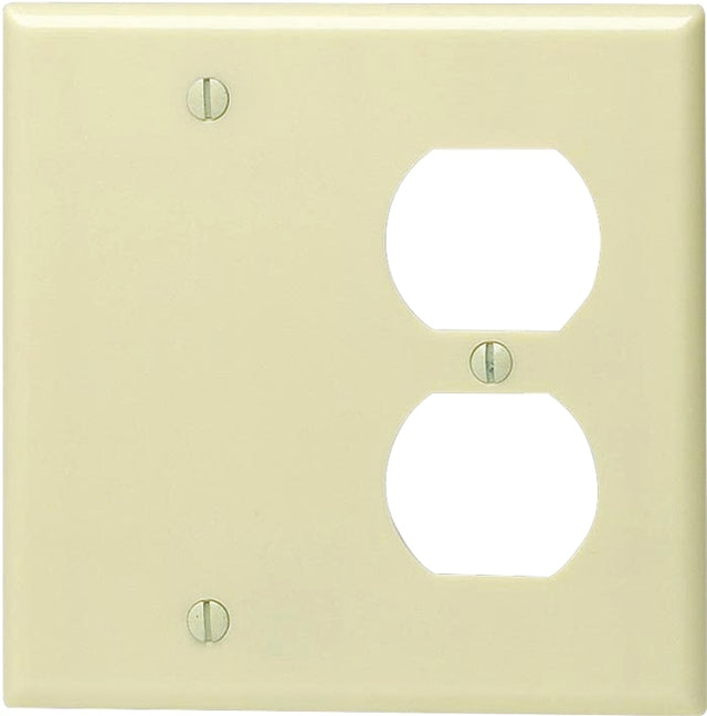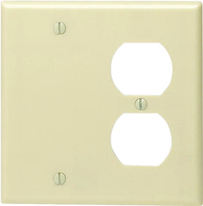 Leviton 86008 Combination Wallplate, 4-1/2 in L, 4-9/16 in W, Standard, 2-Gang, For: Duplex Receptacle, GFCI