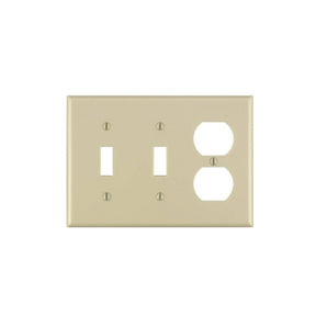 Leviton 86021 Combination Wallplate, 4-1/2 in L, 6-3/8 in W, 3 -Gang, Thermoset Plastic, Ivory, Smooth