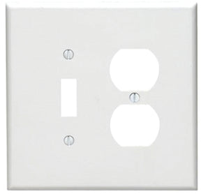 Leviton 88105 Combination Wallplate, 5-1/4 in L, 3-1/2 in W, Oversized, 2 -Gang, Plastic, White, Device Mounting