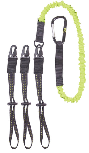 This premium quality tool lanyard comes with three interchangeable tool ends that have 10 in webbing loops with dual channel locks and HK clips for quick tool changes, a heavy-duty carabiner end and is rated for tools up to 6 lb.