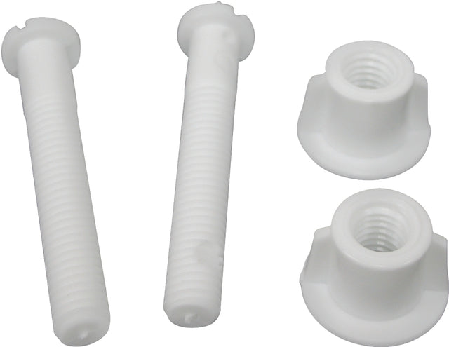 This toilet seat hinge bolt set offers an easy alternative to replacing an entire toilet seat. It features a sturdy plastic construction that provides strength and durability. The hinge bolts are used for securing the toilet seat onto the toilet bowl. Easy DIY instructions included.