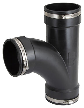 Flexible tees and elbows allow up to 90 deg connections of all common household drain, waste and vent pipes quickly and easily without using special tools or fittings. Because they are exceptionally flexible and long, they are the ideal replacement for fittings at the joint during alteration or repair.