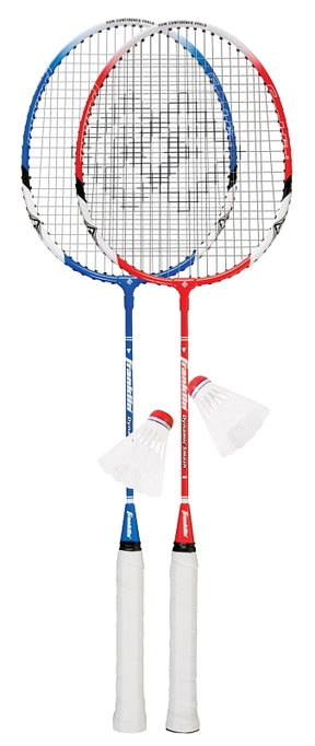 - Includes: (2) Metallic Tightstring Rackets and (2) A-Grade Shuttlecocks
