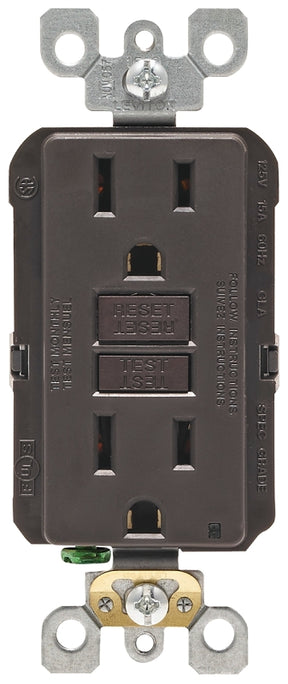 Leviton R00-GFNT1-00K GFCI Receptacle, 2 -Pole, 15 A, 125 V, Back, Side Wiring, NEMA: 5-15R, Brown
