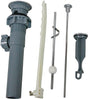 This ProSource 16.46 in L bathroom lavatory assembly is made of plastic. It's a replacement pop up stopper drain plug which is used for in lavatory pop-up drain. The lift rod and all linkage components are included for a complete installation.