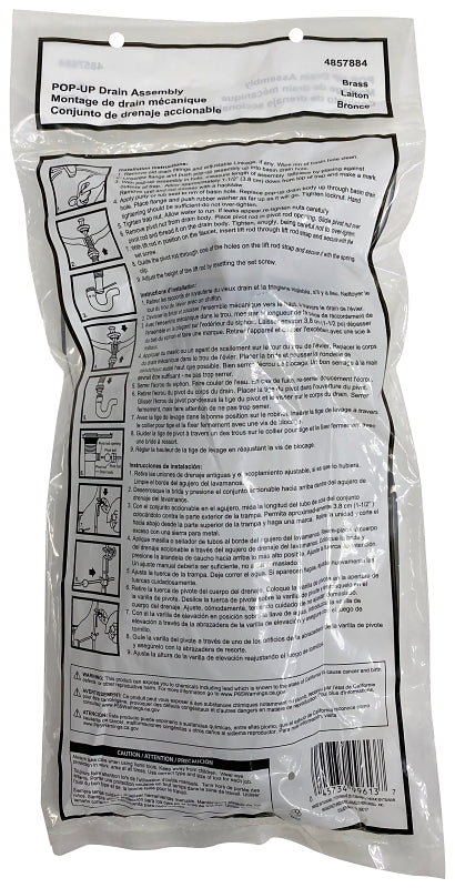 - Includes: (1) Chrome Plated Brass Pop-Up Body (1) Chrome Lift Rod (1) Zinc Plated Linkage Bar and (1) Chrome Pivot Rod