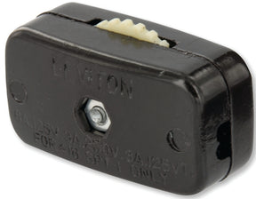Leviton Cord Switch, 125/250 V, 3/6 A, 1 Pole, Brown, Dimensions: 5-1/2 in L x 2-1/2 in W x 1 in D, Suitable for: #18-2 SPT-1 Lamp Cord
