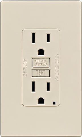Leviton C36-GFNT1-0PT GFCI Duplex Receptacle, Polycarbonate, Light Almond, 2-Pole, 15 A, 125 V, Back, Side Wiring, 60 Hz