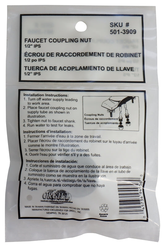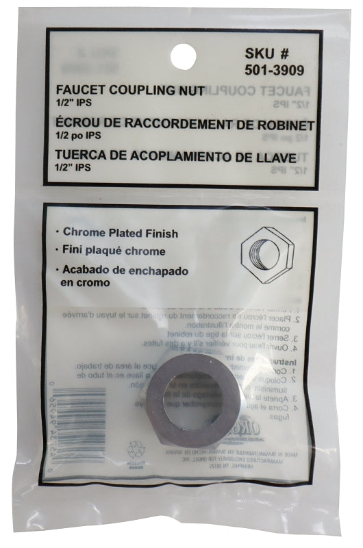 ProSource PMB-095 Faucet Coupling Nut, Brass, Silver, Chrome Plated