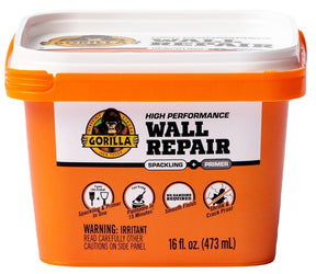 Gorilla high-performance wall repair spackling and primer is the go-to product for strong, durable repairs on walls, ceilings, cracks and both small and large holes. The lightweight formula is easy to spread, easy to control and doesn't sag, shrink or crack. Gorilla wall repair's smooth finish does not require sanding and paints like drywall for a professional looking finished project.