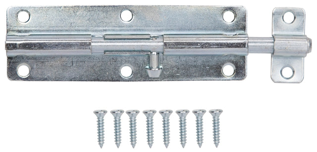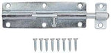 ProSource Lockable Barrel Bolt, Bolt Head Size: 0.31 Dia in, Bolt Length: 6 in, Throw Size: 1.25 in, Steel, Zinc, Number of Mounting Holes: 6+2, 4.62 in L, 1.51 in W, 0.51 in H, Includes: Screws