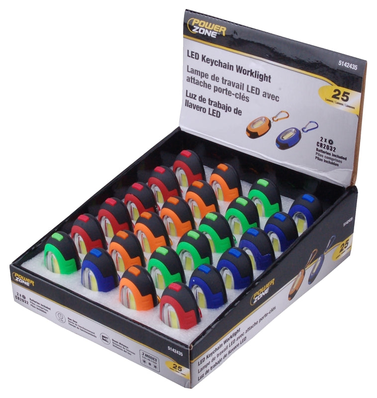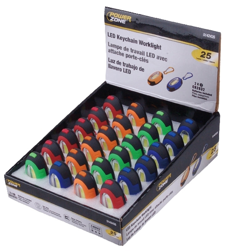 PowerZone 12622 Work Light/Keychain Pocket Light, CR2032 Battery, LED Lamp, 25 Lumens, 6 m Beam Distance, Pack of 24