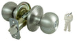 For keyed exterior doors. Both knobs lock or unlock by key outside or turn button inside. All metal components. Solid steel latch assembly. Rust-resistant solid brass keyway for more security. Seamless 1-piece knob for extra strength. Square spindle for right or left handed installations. Easy installation. Cylinder drilled for construction keying. Door prep 2-1/8 in Crossbore, 1 in Edge Bore, 1 x 2-1/4 in Latch Face. Fits 1-3/8 to 1-3/4 in doors.