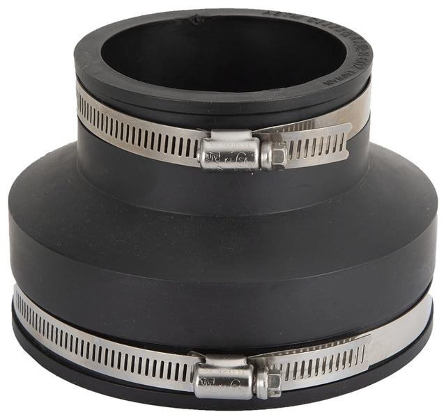 ProSource KJ-008 Coupling, 4 x 3 in, Clay to cast iron or plastic pipes, PVC, Black
