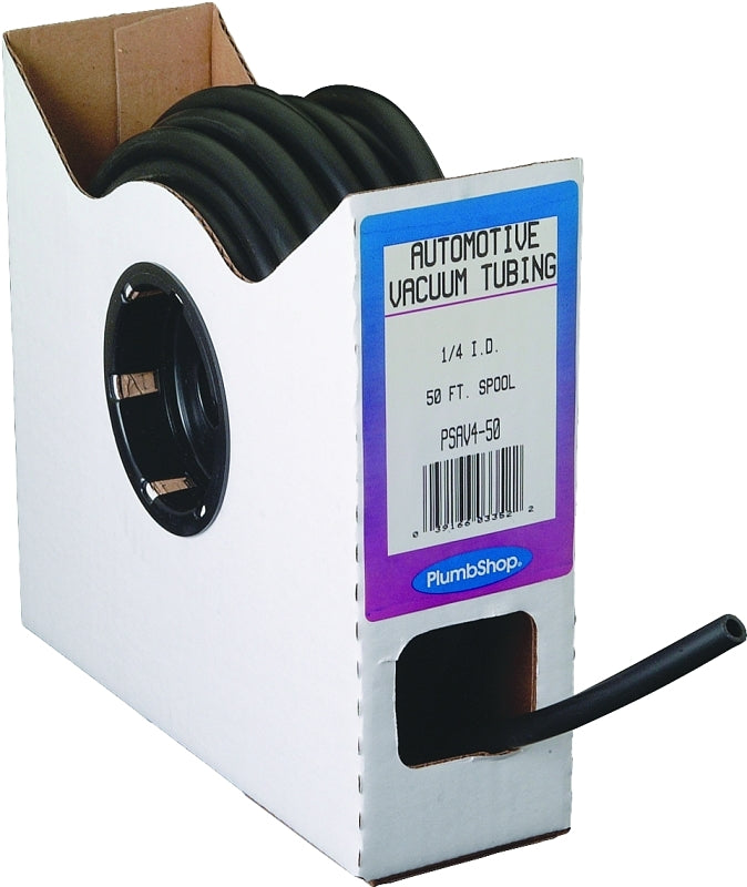 Black non-reinforced vacuum tubing. Small diameter thermoplastic compound for a variety of uses. Designed for vacuum applications but can be used for low pressure water lines. Not for under-hood applications.