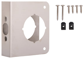 ProSource HSH-042SBN-PS Door Reinforcer, 2-3/8 in Backset, 1-3/8 in Thick Door, Steel, Satin Nickel, 4-1/2 in H, 4 in W