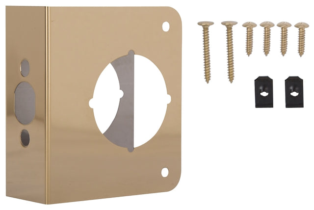 ProSource HSH-044SBP-PS Door Reinforcer, 2-3/8 in Backset, 1-3/4 in Thick Door, Steel, Brass, 4-1/2 in H, 4 in W