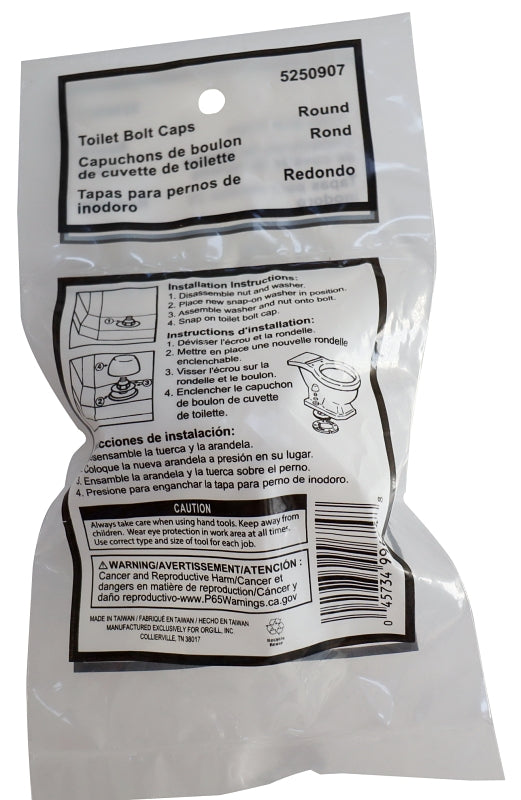 ProSource PMB-475-3L Toilet Bolt Cap, For: Toilet