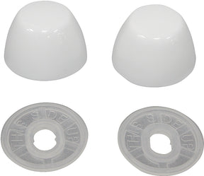 These universal round fit push-on toilet bolt caps add a decorative finish to your toilet. They are easy to install by simply attaching them to a commercial or residential toilet where a classic look is desired. Includes 2 toilet bolt caps with adapters.