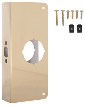 ProSource HSH-050SBP-PS Door Reinforcer, 2-3/8 in Backset, 1-3/4 in Thick Door, Steel, Brass, 9 in H, 4 in W