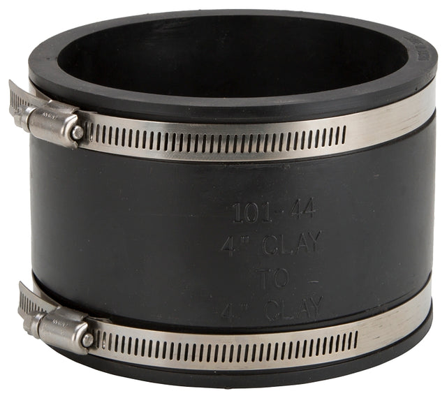 ProSource KJ-018 Coupling, 4 x 4 in, Clay to Clay, PVC, Black