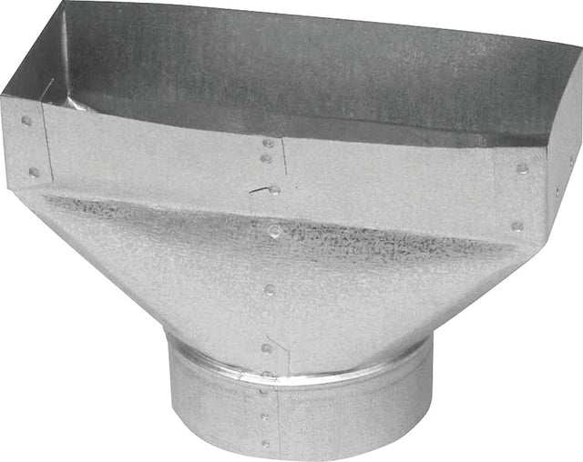 Used for in-line transition from round pipe or insulated flexible duct to a register or grille. 30 ga.