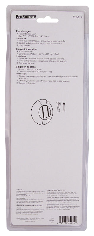 The ProSource includes a picture hanger for Installation. It has a polished brass finish. The dimensions are 11 in x 18 in.