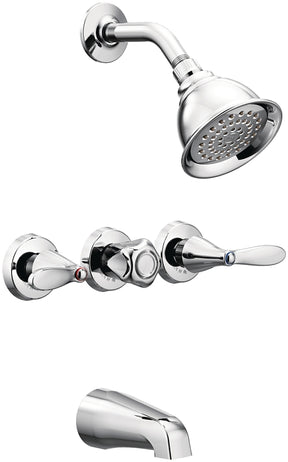 Moen 82663/82403 Tub/Shower Faucet, 1.75 gpm Showerhead, 3-Handle, Metal, Chrome Plated