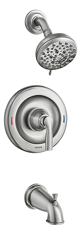 Moen Posi-Temp Hillard 82537SRN Tub and Shower Faucet, Wall-Mount Showerhead, 1.75 gpm Showerhead, Diverter Tub Spout