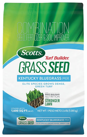 - The redesigned Scotts Turf Builder Grass Seed Kentucky Bluegrass Mix is an elite species that grows dense, green turf and features Root-Building Nutrition for a stronger lawn