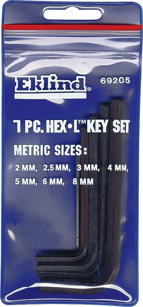 Eklind 69205 Hex Key Set, Includes: 2 to 8 mm Keys, 7-Piece, Steel, Black is backordered and will ship as soon as it is back in stock.