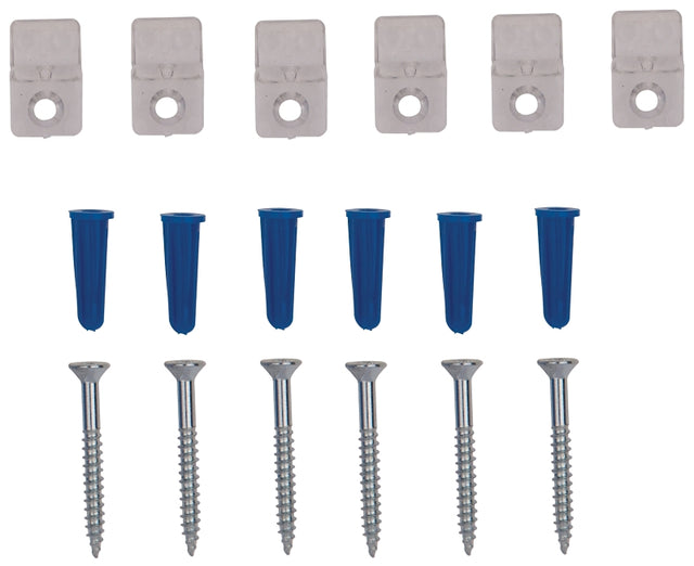 The ProSource mirror holder is clear and made of plastic. The anchor and screws are included.