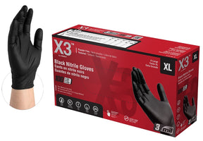 Ammex Disposable Gloves, XL, Nitrile, Powdered/Powder Free: Powder-Free, Black, 9-1/2 in L, Cuff Type: Beaded, Latex Free: Yes, Textured, 3 mil Thick, Industrial Grade, Resists: Puncture